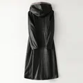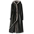 Classic Autumn Winter Leather Mink Collar Hooded Down Jackets Woman Thick Warm Black Real Fur Long Coat High Quality Outwear