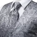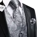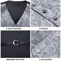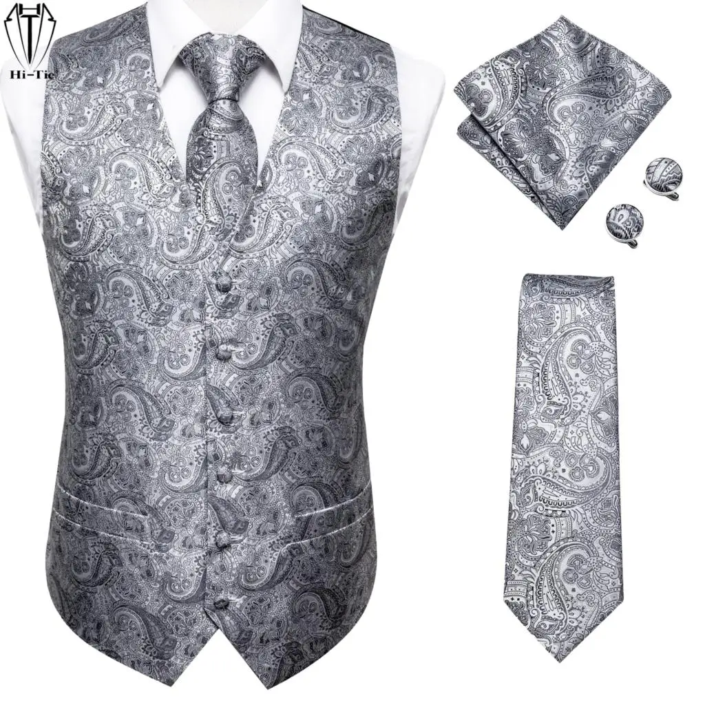 Hi-Tie Mens Suit Vests Necktie Hankerchief Cufflinks Set Silk Slim Fit Dress Waistcoat Tie Jacket Paisley Floral Plain Colors