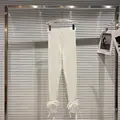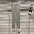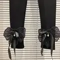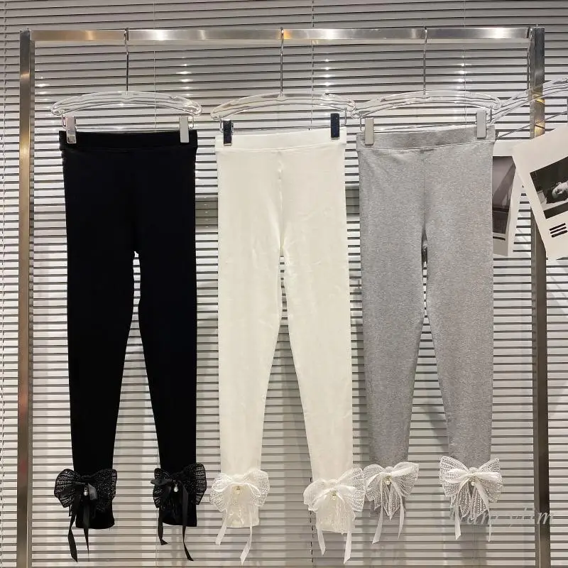 Leggings Women 2021 Autumn New Mesh Bow Ribbon Stretch Slim Fit Pantalones De Mujer Leggins Grey White Black